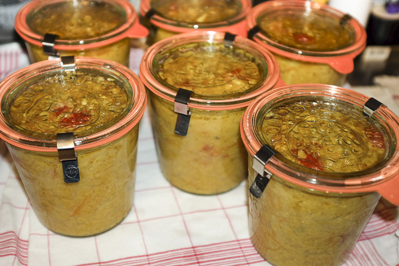 Linsen-Kokos-Eintopf zum Einwecken Ich werde manchmal gefragt, woher die eingeweckten Gläser kommen in meinem Lager – ganz einfach: ich habe das selbst gemacht. Nicht nur schweißen, sägen und bohren ist angesagt – nein...