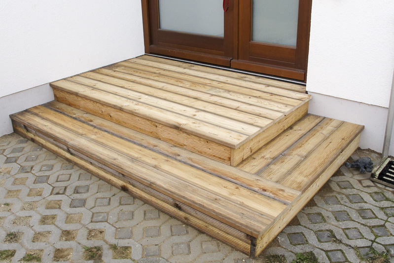 Für die nächsten Jahre sollte der Eingang mit einer erweiterten Holztreppe aus Lärchenholz versehen werden. Hier nur eine kleine Bauanleitung mit ein paar zusätzlichen Hinweisen. hier das Ergebnis Material Für das Podest...