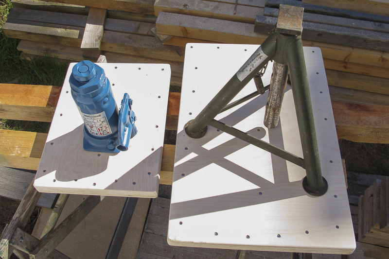 Ein Brett geht natürlich auch, reißt aber mal öfter und das Material für die Unterlage war gerade übrig. Anprobe, fertig geschliffene Unterlagen Zum Aufbocken des Mogs und für die Sicherung mit einem...