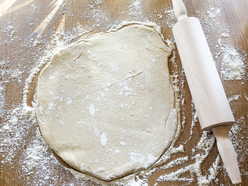 Den Teig am besten mit der Maschine machen, dann muss man nicht so viel kneten 😉
