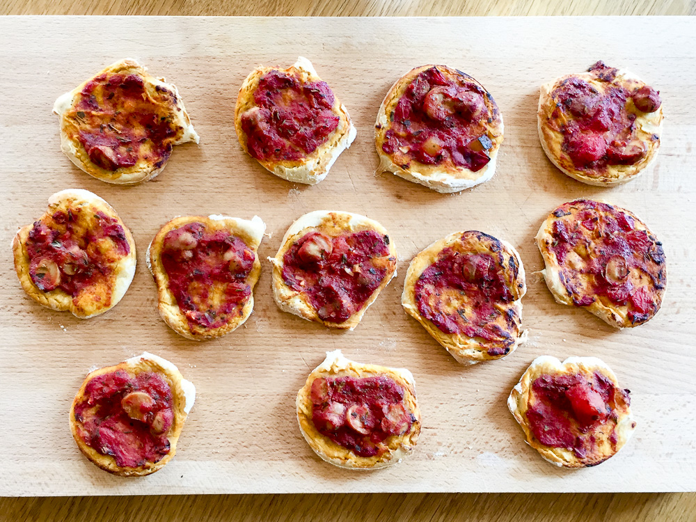 Minipizzen mit und ohne Käse  – auch als Pizzabrötchen