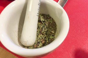 - zum Einreiben: schwarzer Pfeffer, 1/2 TL Thymianblättchen, 6 Wacholderbeeren zerdrückt,wenig Zimt