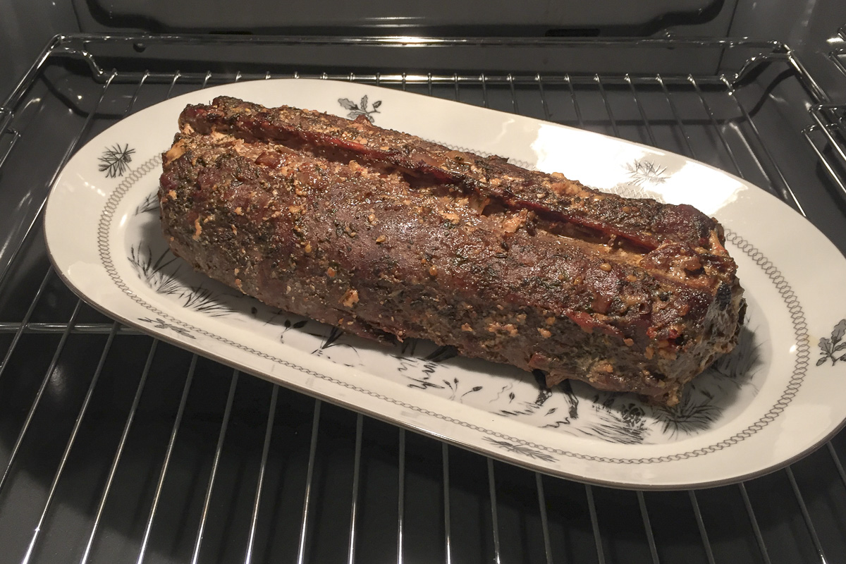 Bei 240 Grad nun 30 Minuten den Rücken anbraten, ein paar mal wenden.