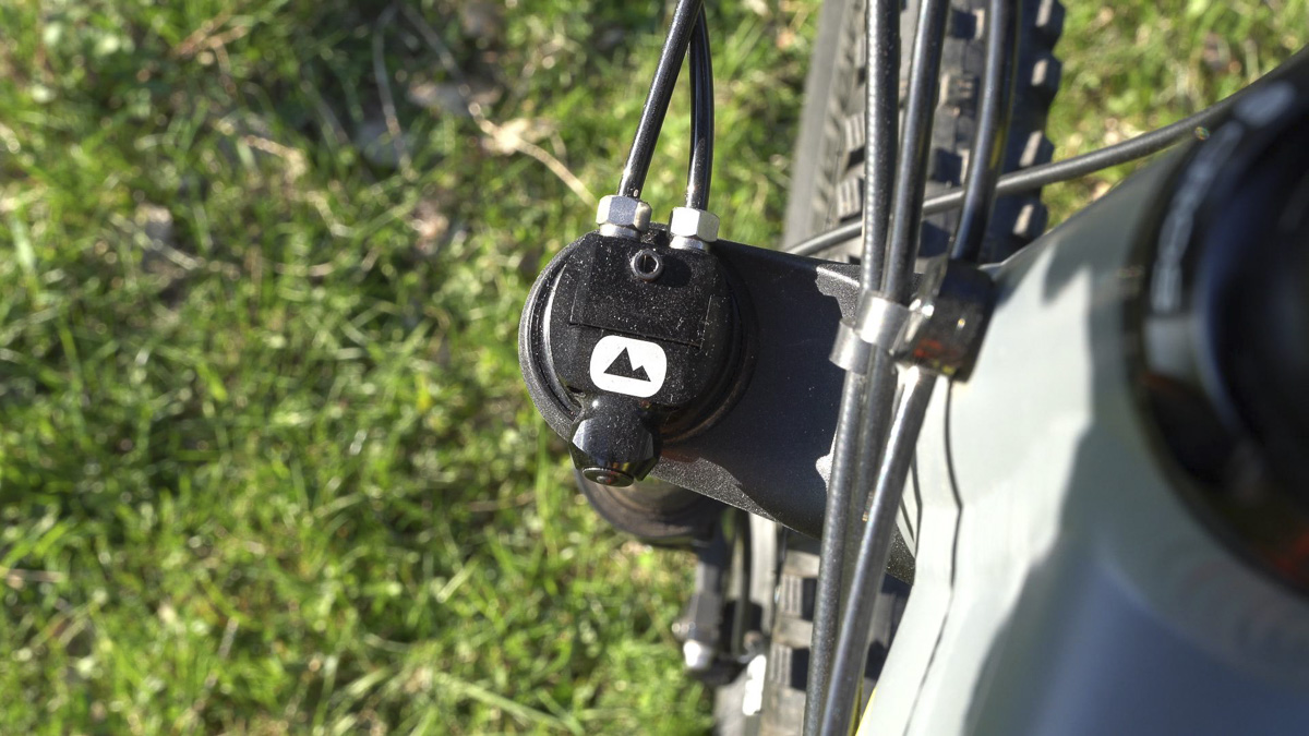 Man drückt während der Fahrt auf einen Knopf am Lenker und kann somit die Geometrie verstellen. Geht es steil bergauf, wird der Knopf gedrückt, das Gewicht auf die Gabel verlagert und diese um 80 mm abgesenkt – bitte nicht dabei bremsen! Die Absenkung der Gabel ist stufenlos anpassbar – erst komplett Absenken – dann durch kurzes Knopf drücken die beste Position finden.