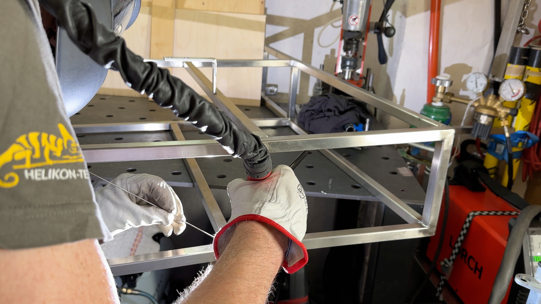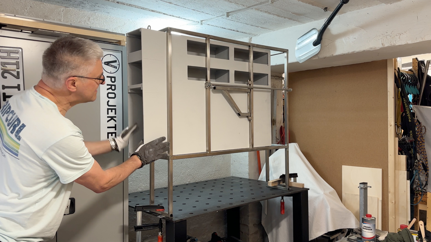 Zuerst wurde das Gestell geschweißt. Es muss rechtwinklig und gerade sein, denn sonst passt später der Innenkasten nicht hinein.