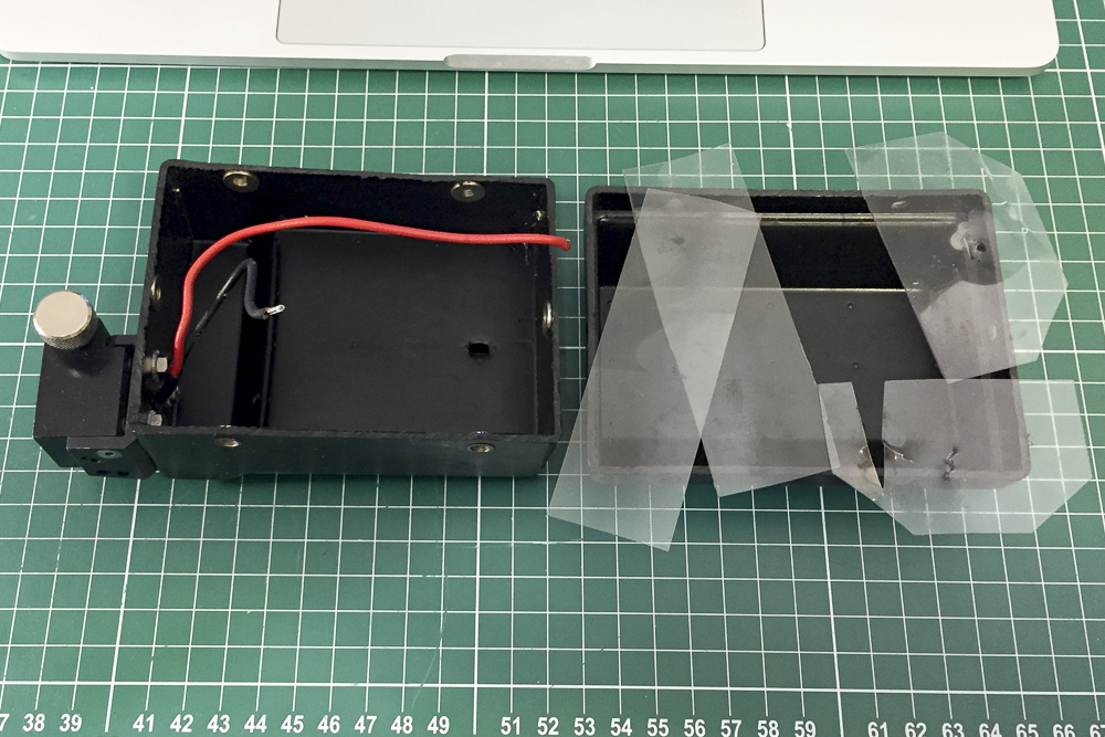 das leere Gehäuse und rechts sind die Isolierfolien zu sehen, die später wieder eingesetzt werden