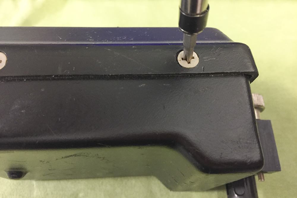 Zuerst den Gehäusedeckel abschrauben – genau 6 Schrauben. Die Schraube am Anschlussstück geht am besten raus, wenn man den Adapter etwas anwinkelt und die Feststellschraube ganz herausdreht. Vorsicht – die alten Akkus können teilweise ausgelaufen sein, so dass man Handschuhe anziehen sollte und das Gehäuse innen gut reinigen muss.