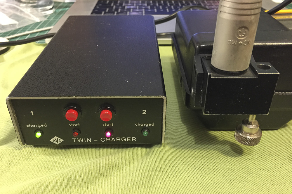 Die verbauten Akkus sind laut Aufdruck SANYO NC1900SCR (N1900SCR), welche nominal 1.900 mAh haben. Die Angabe 2.000 mAh ist also etwas optimistisch gewählt. Das Ladegrät von Arri, der Twin-Charger lädt die Akkus 7 Stunden lang mit 15V und ca. 350 mA – das hört sich also nach Konstantstromlader an. Zum erstmaligen Formieren der Akkus ist das ja ganz gut aber auf Dauer nicht optimal. Die verbauten Zellen sollen bei max. 45 Grad geladen werden, besser nur 40 Grad. Bei 15 Volt würde sich eine Ladeschlussspannung von 1,5V pro Zelle realisieren. NC-Akkus können auch bis 1,65V Ladeschlussspannung haben (1,4-1,65V) – die Ladeschlussspannung ist jedoch kein sinnvoller Messwert für die Erkennung des vollgeladenen Akkus, da sie je nach Alter, Temperatur und Bauart der Zelle schwanken kann.