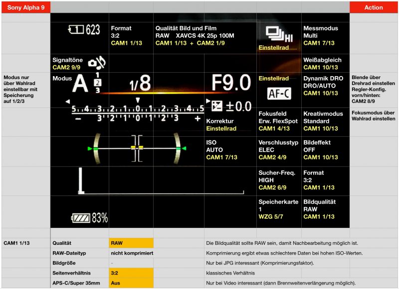 Menü Sony Alpha 9