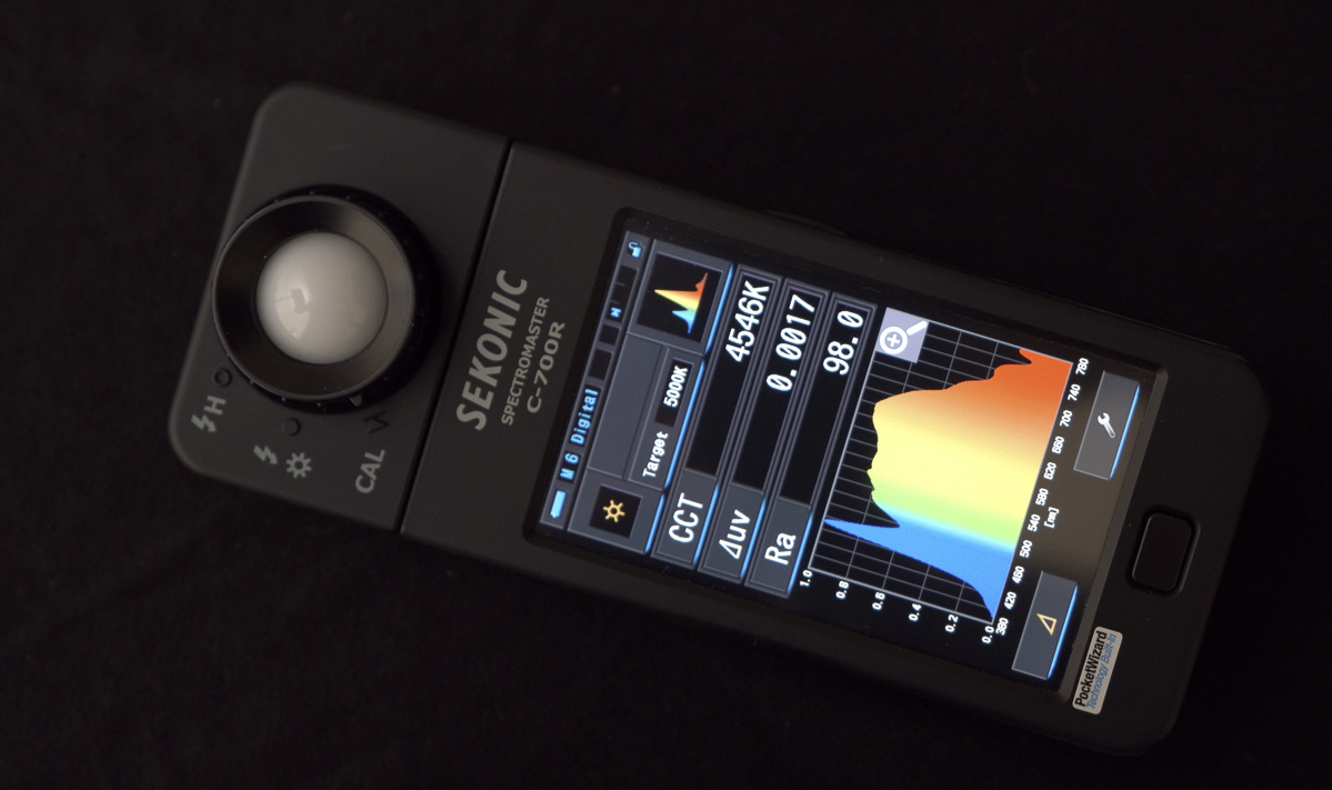 Für meine Videos und auch in der Fotografie setze ich oft künstliches Licht ein oder mische dies mit dem vorhandenen Licht.Die Lichtquellen unterscheiden sich dabei sehr stark und daraus können sich Farbstiche ergeben, die sich auch in der Nachbearbeitung nicht korrigieren lassen. Mit dem Messgerät kann ich die Farben der einzelnen Leuchtquellen ausmessen und bei Bedarf anpassen. Ebenso kann ich die Lichtqualität einzelner Leuchten und Blitzgeräte messen (CRI).