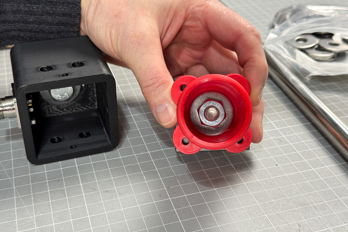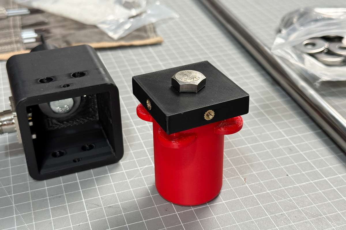 Nach mehreren Prototypen ist ein Gehäuse entstanden, das inzwischen „fertig“ wirkt: etwas größer als frühere Versionen, innen mit mehr Platz, und so modular, dass Teile bei Bedarf ersetzt werden können. Der Mastanschluss kann gewechselt werden und passt dadurch auf sehr viele Mastteile.