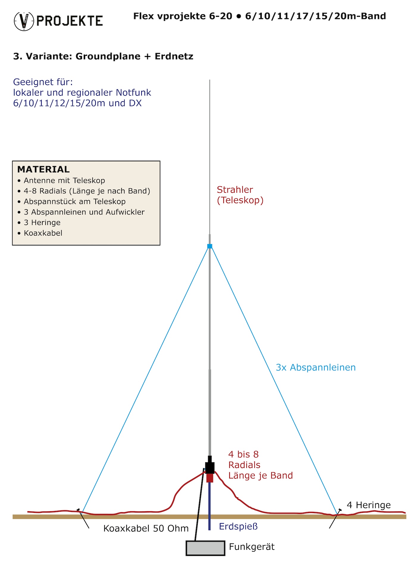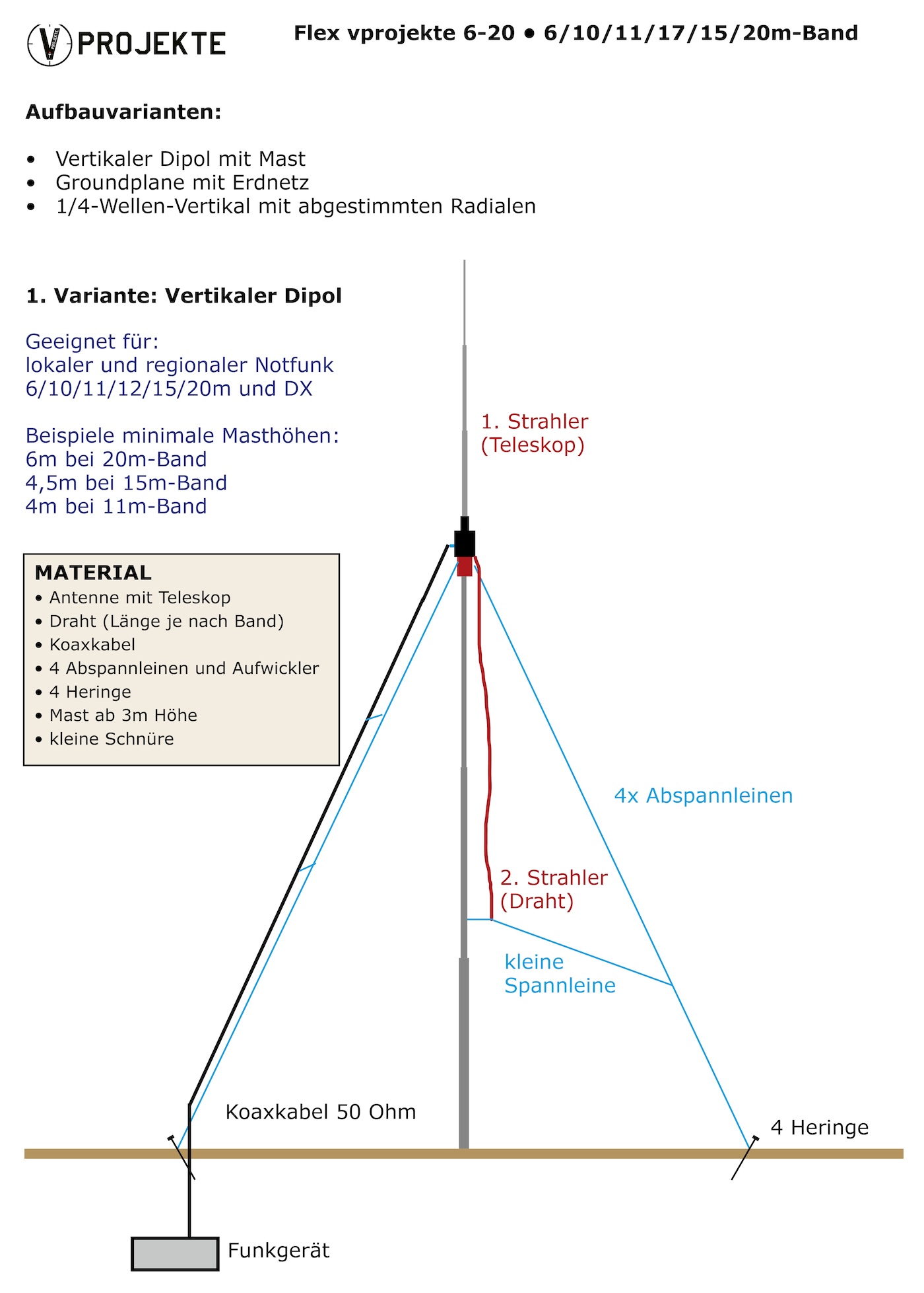 Geplant sind drei Varianten, die sich in der Praxis bewährt haben und ohne komplizierte Mechanik auskommen. Je nach Gelände und Funkziel wählt man die passende Aufbauform.