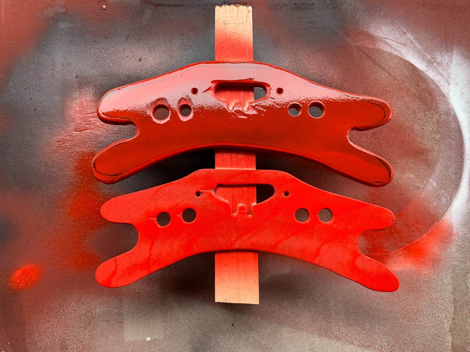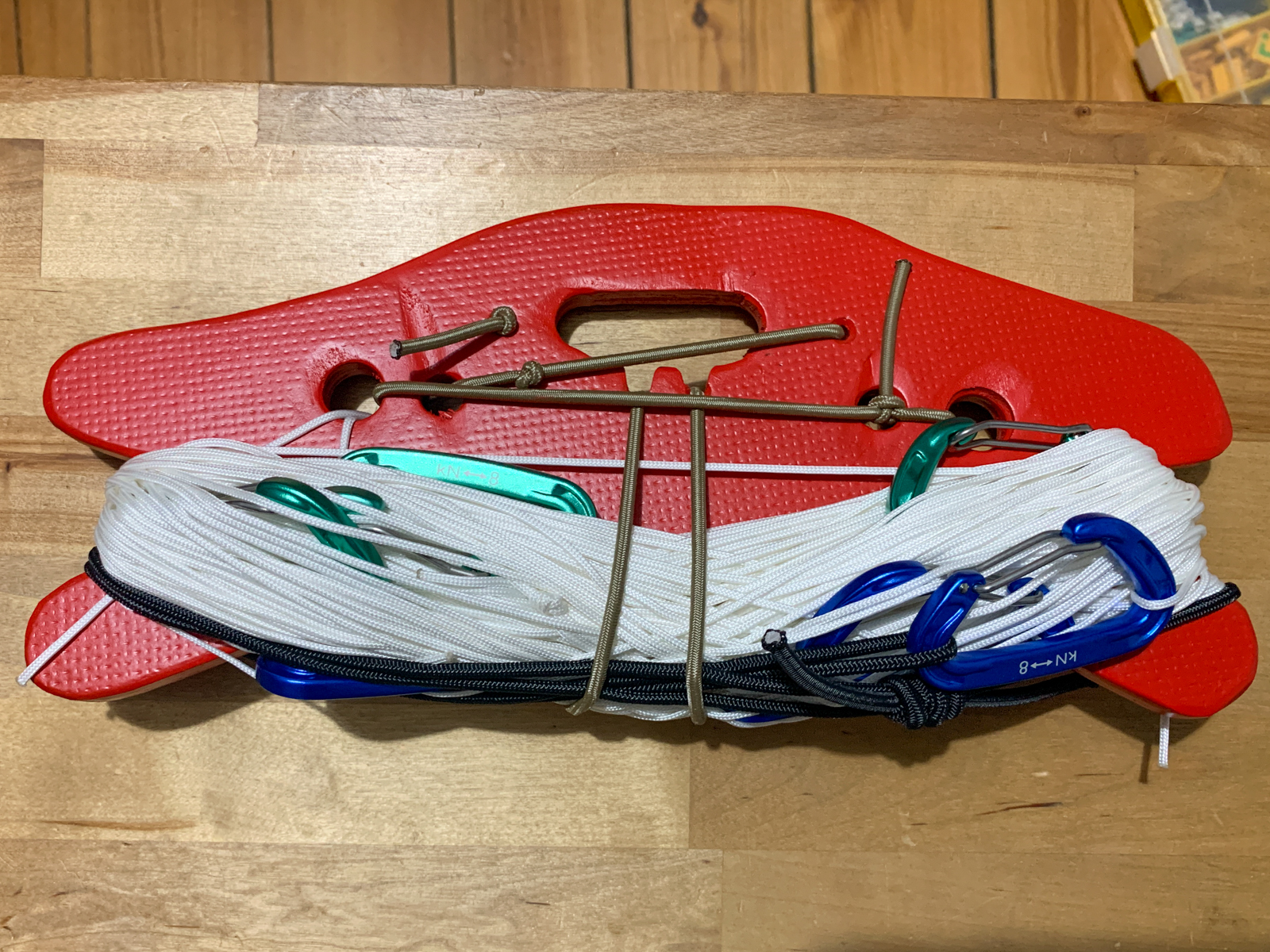 Irgendwo muss das Abspannband aufgerollt werden. Diese teile kann man sich einfach selbst bauen. Ein wenig Sperrholz und Farbe und schon hat man perfekte Aufroller.