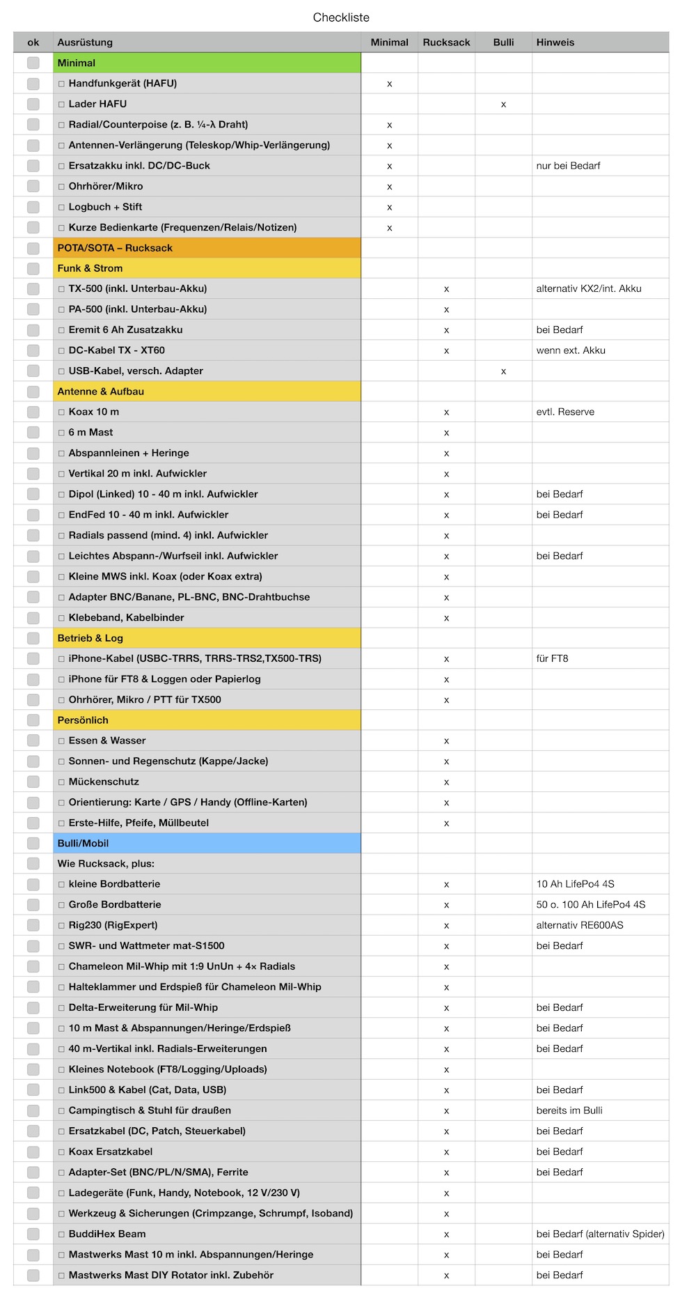 Hier die Checkliste für meine Portabel-Aktivitäten in verschiedenen Formaten.