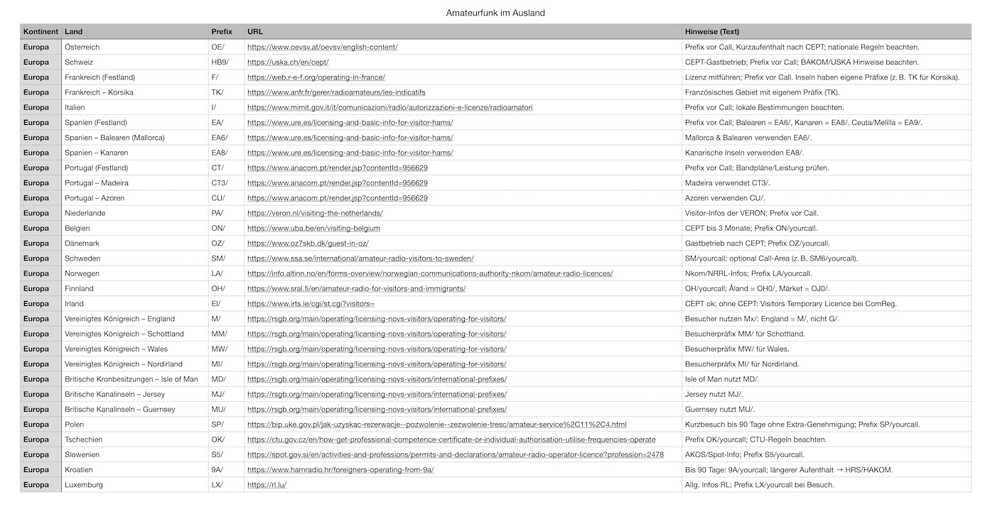 Schöne Landschaften, kleine Abenteuer und klassischer Funkbetrieb mit Präfix. Hier findest du das Video, Checklisten zum Download und die Call‑Präfixliste.