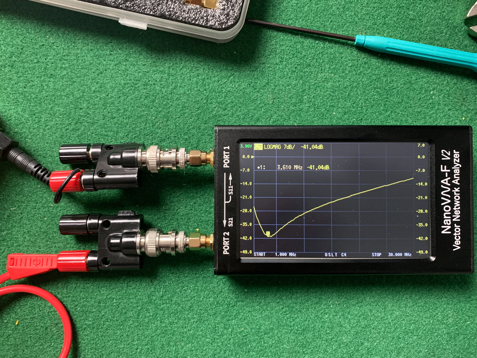 Den NanoVNA inkl. der vorgesehenen Messleitungen kalibrieren. Wie das geht, habe ich hier in diesem Blogbeitrag schon beschrieben.
