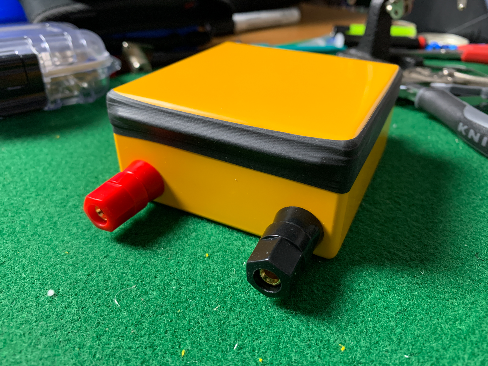 Am unteren Ende wird ein 50-Ohm-Koaxkabel zu Funkgerät geführt, am oberen Ende wird der Strahler an der roten Buchse angeschlossen. Die notwendigen Radials werden an der oberen schwarzen Buchse angeschlossen.