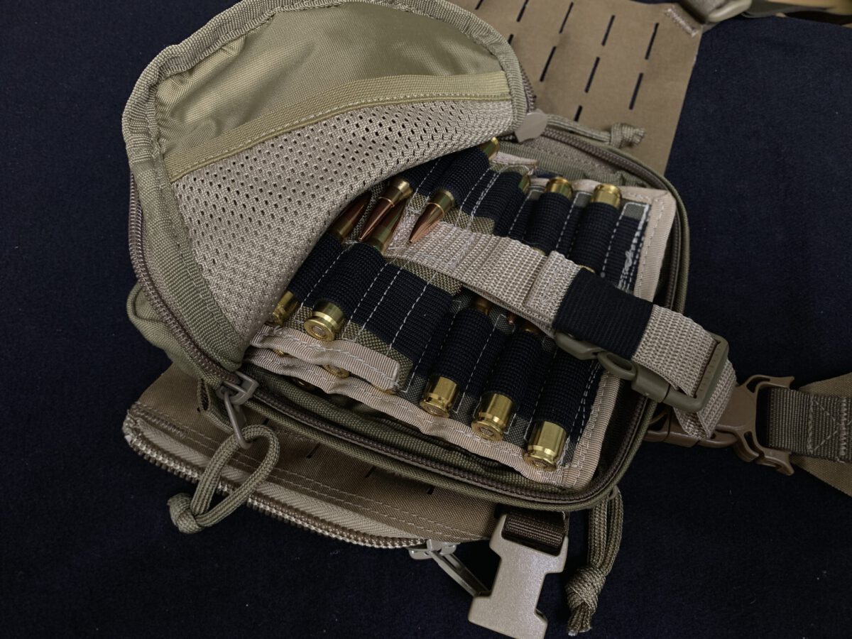 - die Patronen müssen in Taschen am Chest Rig angebracht werden können