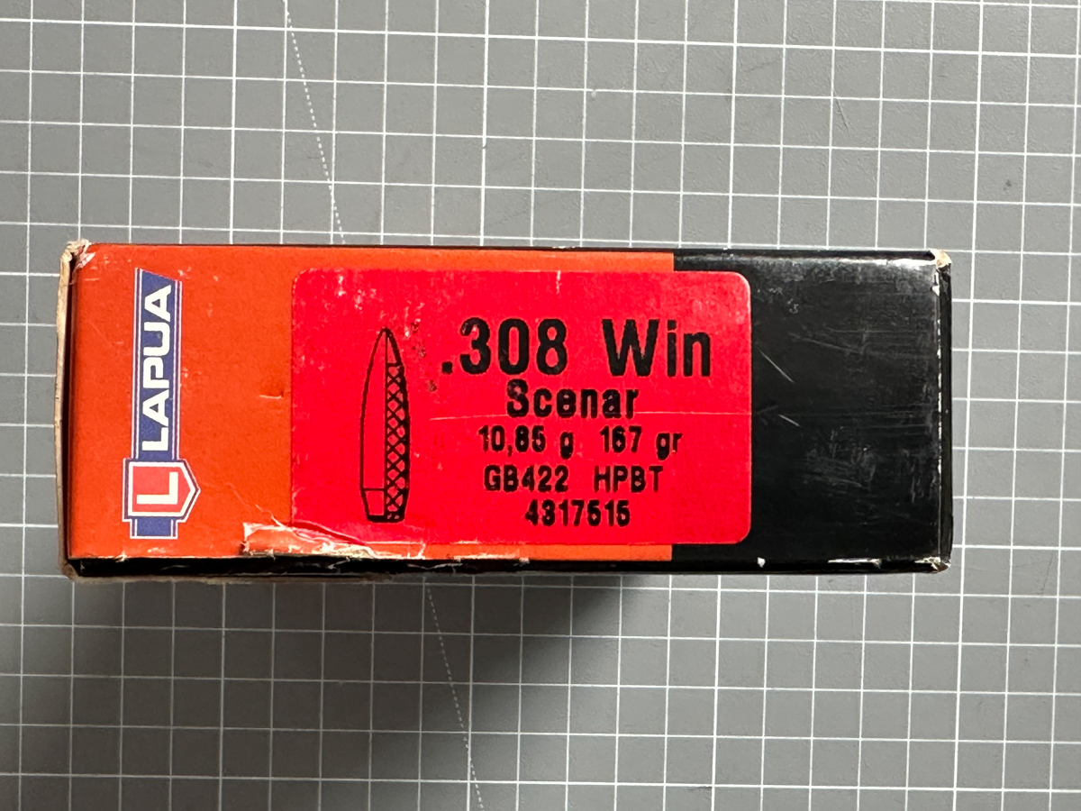Lapua .308 Win Scenar 167 Grain GB422 HPBT • 12 Packungen a 20 Stück = 240 Stück (alle verschlossen)