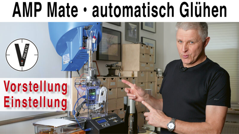 Der AMP-Glüher (Mark II bzw. Mark II DB) ist ein induktiver Hülsenglühapparat mit mikroprozessorgesteuerter Leistungsregelung. In Verbindung mit dem AMP Mate übernimmt er das automatische Zuführen, Glühen und Auswerfen der Hülsen insbesondere für größere Serien eine sehr saubere, reproduzierbare Lösung.