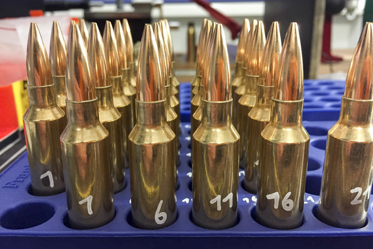 Die Patronen sollten möglichst exakt geladen werden, d.h., bereits aus dieser Waffe abgeschossene Hülsen werden präzise halskalibriert, die Geschosse alle abgewogen, eine gleichmäßige L6 genau eingehalten (möglichst an der Ogive) und auf Rundlauf geprüft.