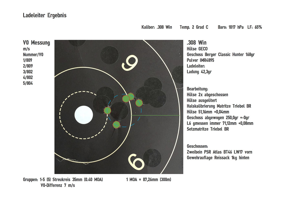 Diese Patrone wurde nun hergestellt und getestet. Hier das Ergebnis: