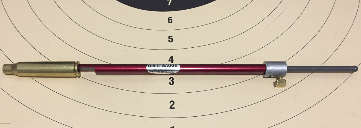 Für die Innenballistik ist es wichtig, dass die gesamte Länge des Patronenlagers gemessen wird, genau an dem Punkt, wenn das Geschoss die Züge und Felder berührt. Dies kann man mit der Putzstockmethode oder einfacher mit einem OAL-Messgerät mit entsprechend vorbereiteter Hülse und dem einzusetzenden Geschoss durchführen.