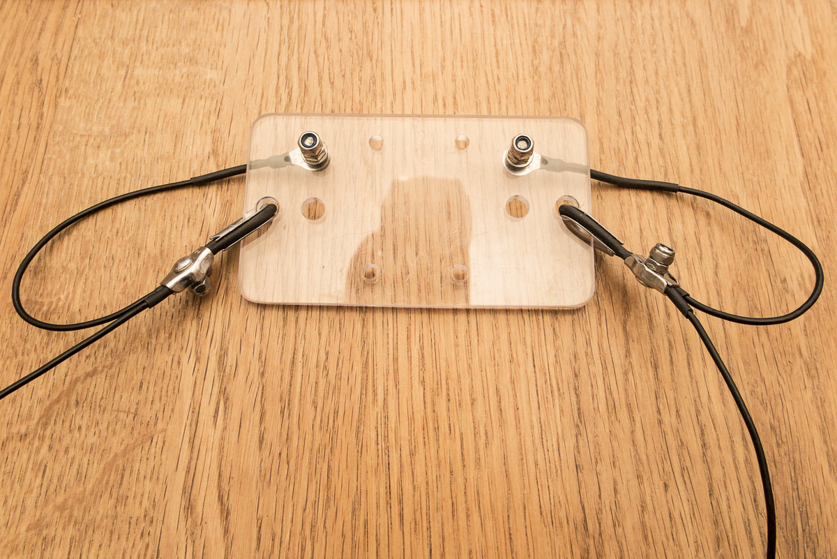 Platte mit Zugentlastungen und Schrauben für die HL