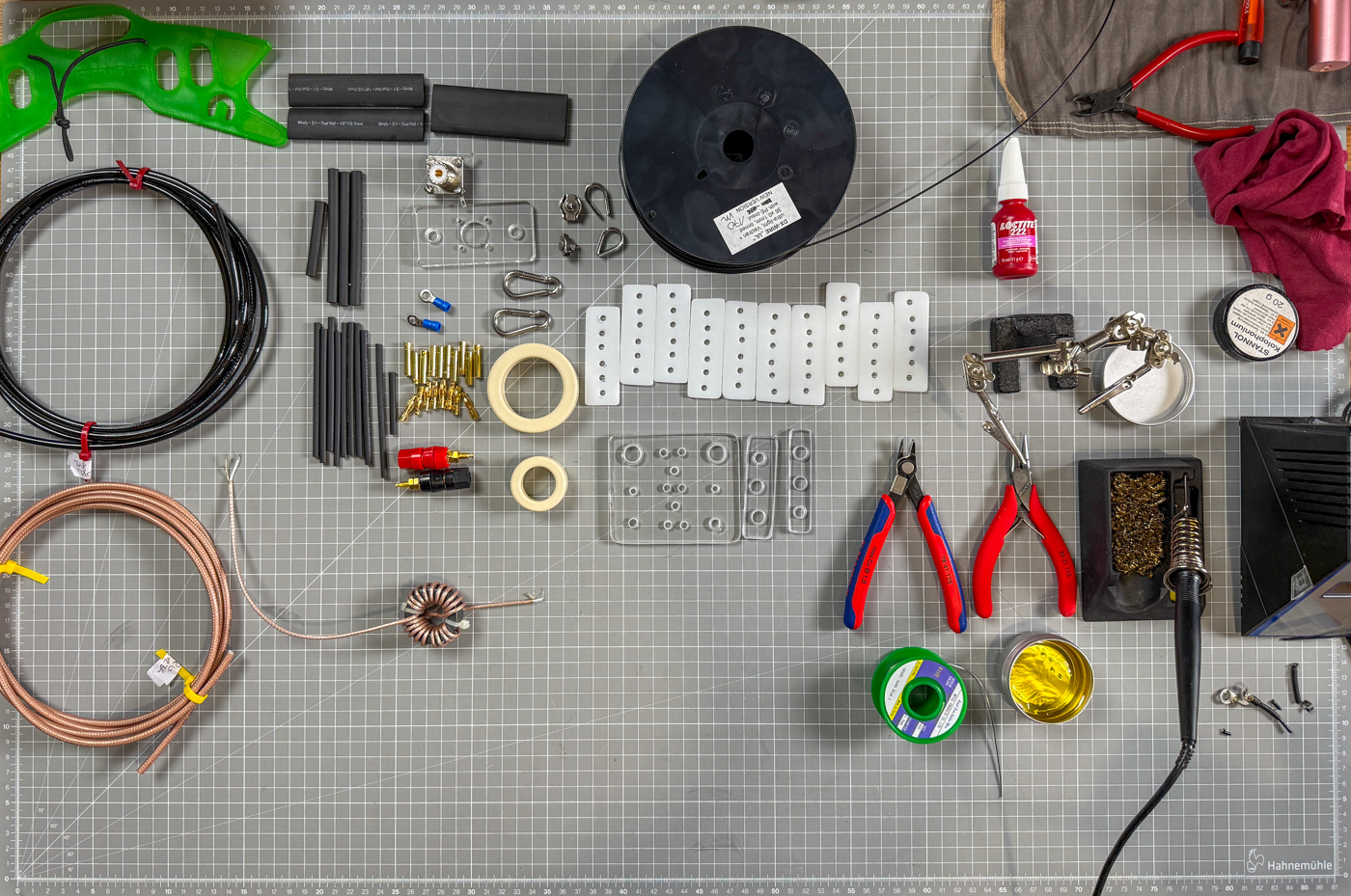 - Antennendraht: DX‑WIRE UL 1,5 mm (Vectran/Cu), schwarz – ca. 2× 11 m + Zusatzabschnitte (Summe ~ 2× 10,03 m)