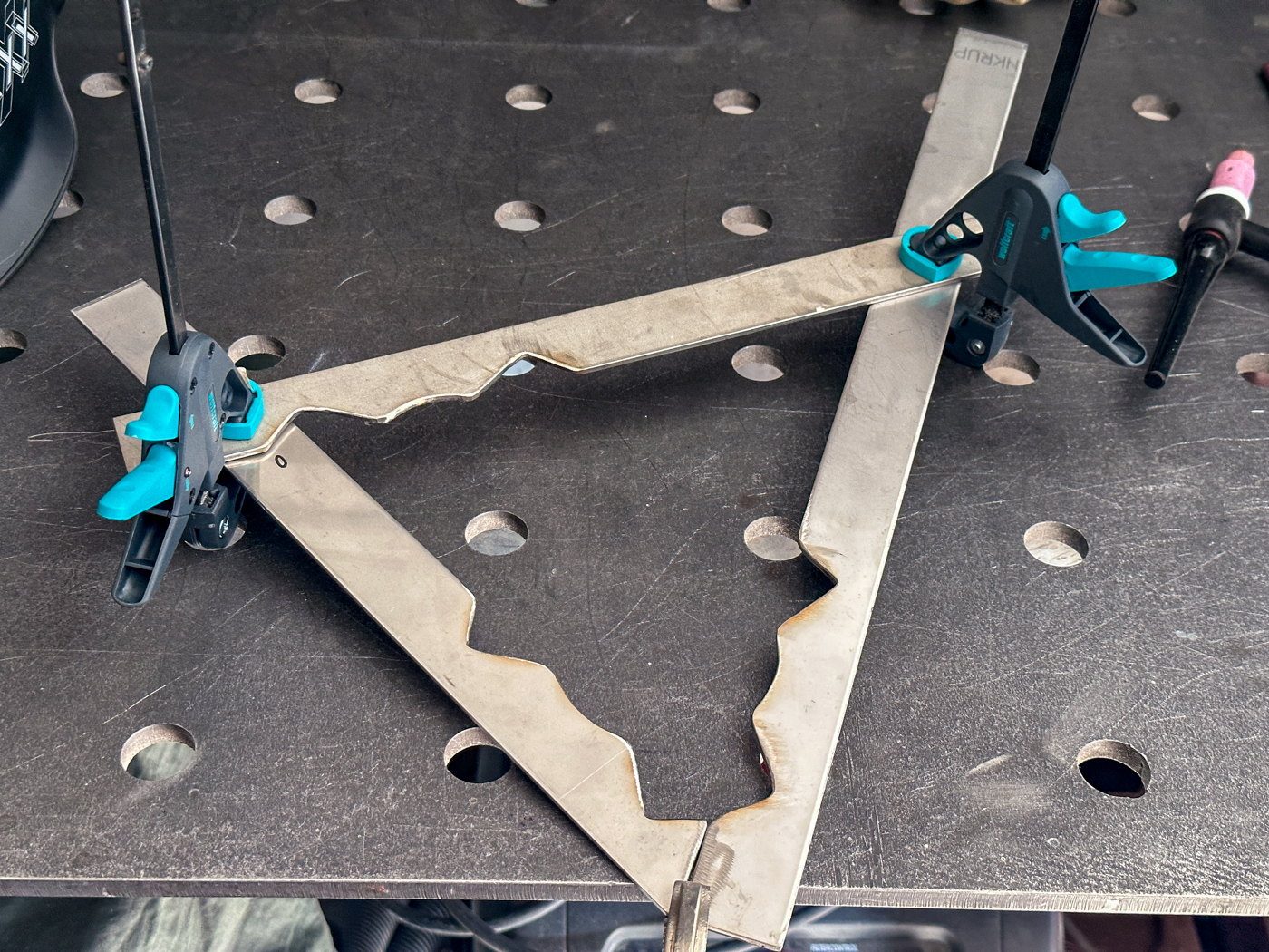 - Teile anpassen und schweißen: Die drei Stahlteile passend anordnen und zu einer Plattform zusammenschweißen.
