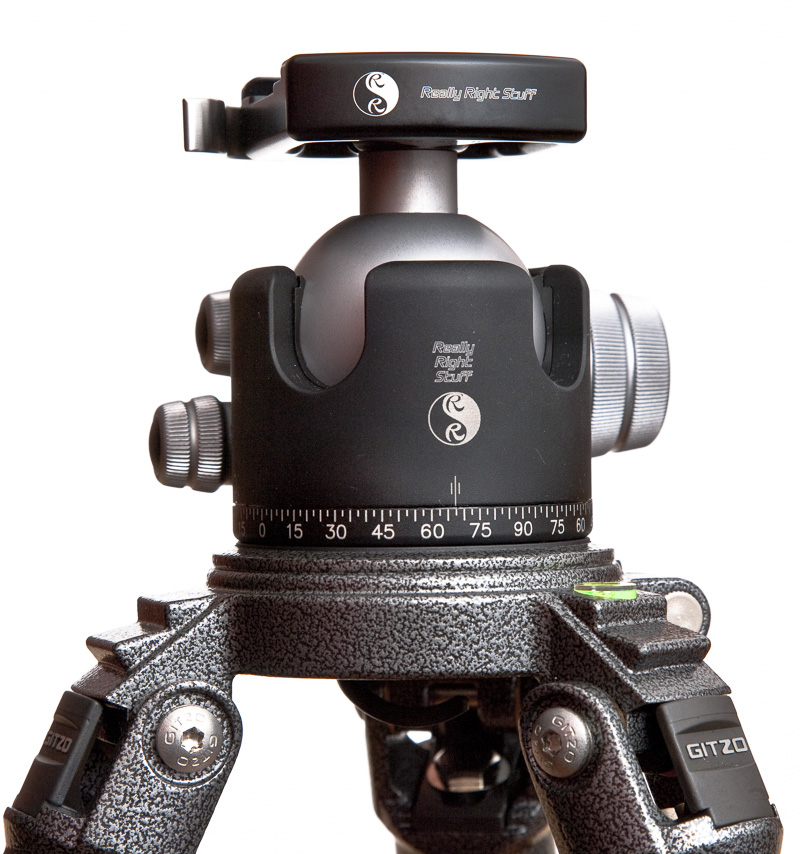 Really Right Stuff Kugelkopf BH-55 LR BR-55 auf Gitzo-Stativ Technik des BH-55 Der Kugelkopf hat folgende Technische Daten: maximale Belastbarkeit: 23 kg Höhe: 94 mm Durchmesser am Boden: 74 mm Kugeldurchmesser: 55 mm...