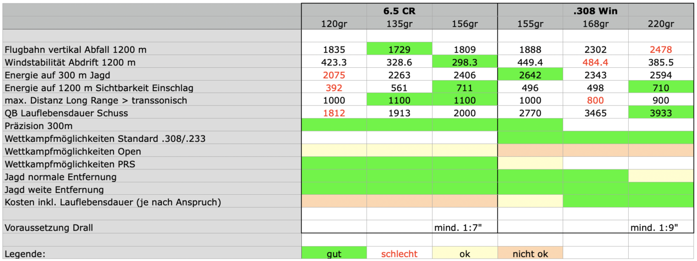 Für die Kaliberdiskussion in meinem Video „6.5CR vs. .308Win“ sind hier die entsprechenden Berechnungen und Dateien zum Download bereitgestellt, um eigene Entscheidungen zu treffen.